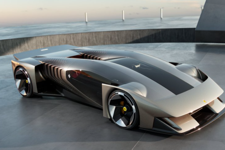 Длабоките странични канали и перфорираните панели дополнително го насочуваат воздухот, а предниот дел се истакнува со широк спојлер меѓу тркалата и вовлекувачки светла – потсетник на тркачките прототипови на „Ferrari“ од минатото.