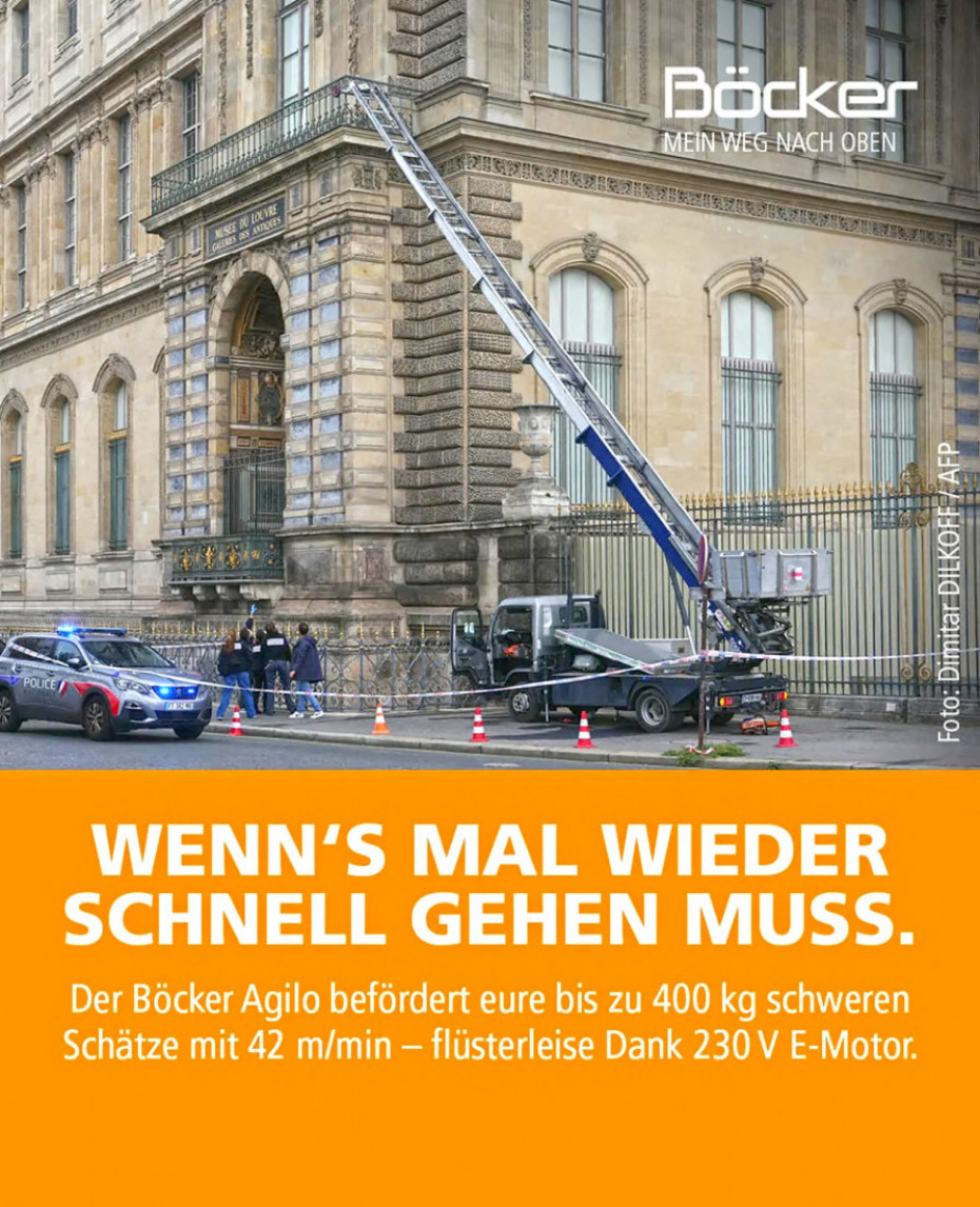 Откако минатата недела „Лувр“ беше потресен од дрска кражба на скапоцени камења и француската круна, никој не очекуваше дека најголемиот пресврт во приказната ќе дојде од мало семејно претпријатие за кранови и скали од западна Германија.
