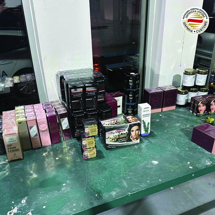 Во друг случај откриени се вкупно 143 парчиња парфеми и козметика пронајдени под патосниците на задните седишта како и во багажниот простор на автомобил управуван од македонски државјанин.