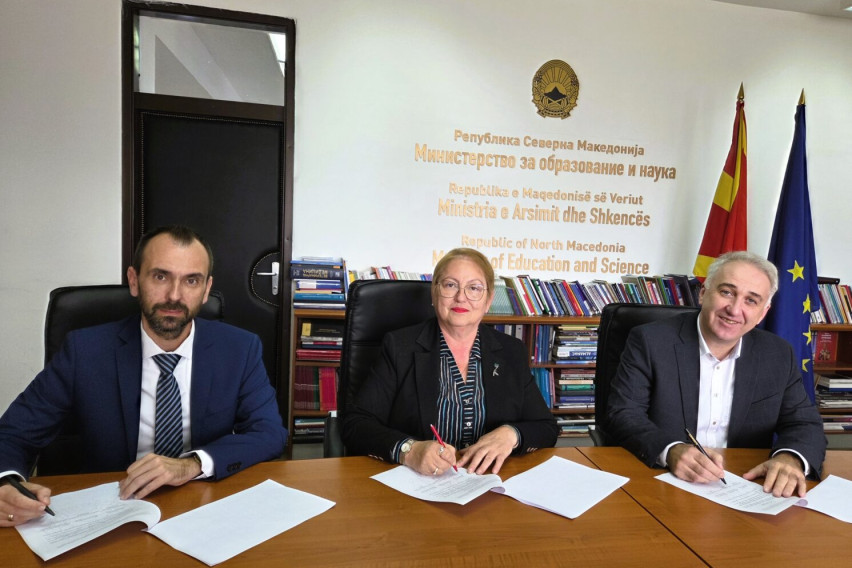 Двете страни денес потпишаа меморандум за соработка кој предвидува искористување на научно-стручните, професионалните, материјално-техничките и просторните услови за организирање на обуки за наставникот кадар, како и работилници за развој и примена на иновации во образованието со фокус на генеративната вештачка интелигенција.