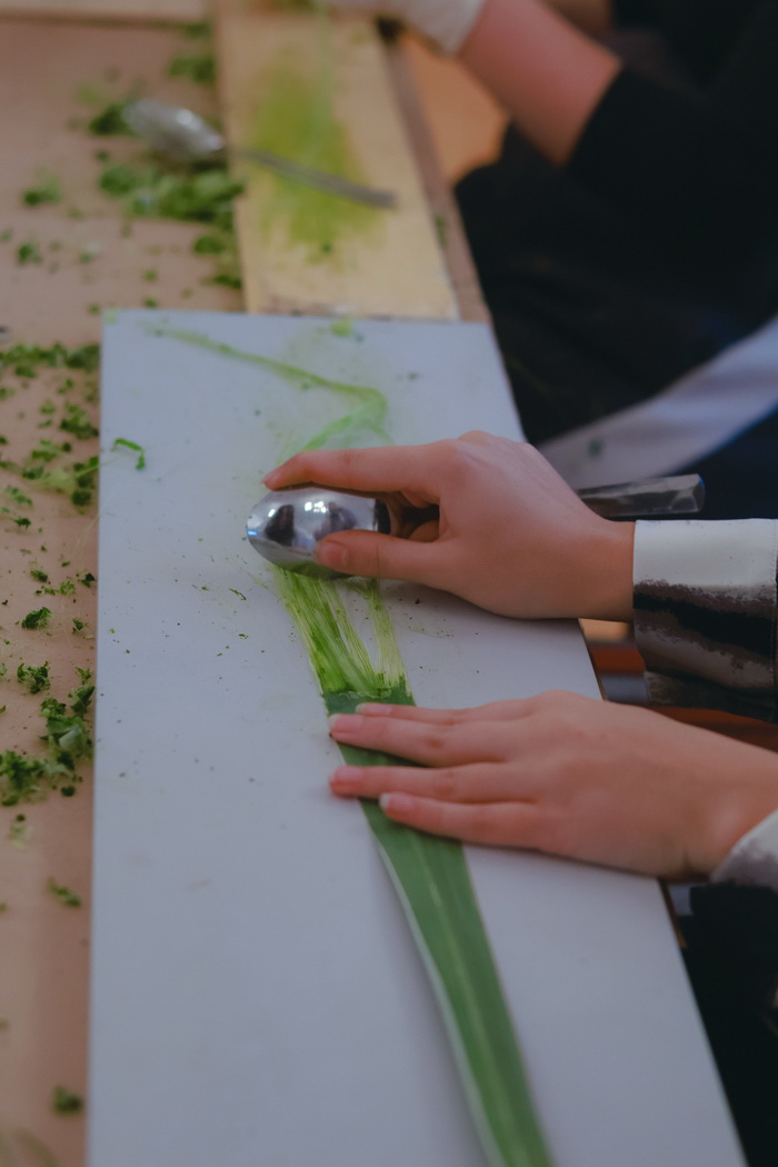 Процесот опфати рачна обработка на листовите, извлекување на влакна и бојадисување со природни пигменти, со што секој учесник создаде свој мал фрагмент на одржлив текстил инспириран од природата.