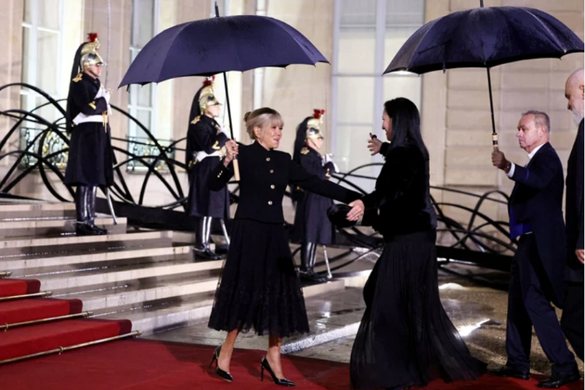 Линда Рама се појавила со својот сопруг на свечената вечера во Елисејската палата во Париз. Приемот бил организиран во рамките на Форумот за мир, кој започнал во средата, а вчера завршил.