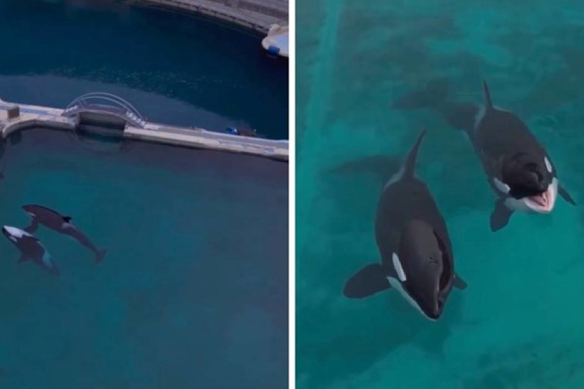 Нова, потресна снимка од две орки заробени во напуштен воден парк во Франција го шокираше светот. Видеото прикажува мајка и син како безживотно лебдат во валкан базен, а потоа одеднаш почнуваат да изведуваат трикови како да стои публика пред нив, пишува „LADbible“.