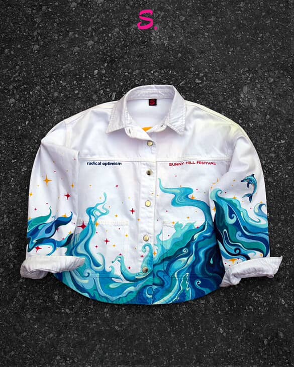 „Дизајнот е инспириран од омотот на нејзиниот албум Radical Optimism – со мотив на зајдисонце во боите на нејзиниот фестивал Sunny Hill во Приштина. Јакната е 100% веганска. Процесот, од идеја до реализација, го водеше Лира Грабул, а на некој начин ова беше момент на почит и соработка помеѓу семејствата Грабул и Липа, бидејќи Дуги беше вклучен во процесот, а на крај токму тој ѝ ја предаде пред настапот“.
