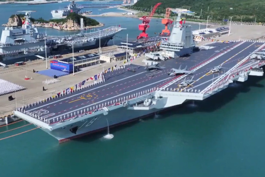 Најновиот кинески носач на авиони „Фуџијан“ официјално е пуштен во служба, што претставува значаен чекор во напорите на Пекинг да ја достигне поморската моќ на САД, јави кинеската државна телевизија CCTV. На церемонијата на островот Хаинан присуствувал и претседателот Шји Џинпинг, кој симболично го активирал катапултот на палубата.