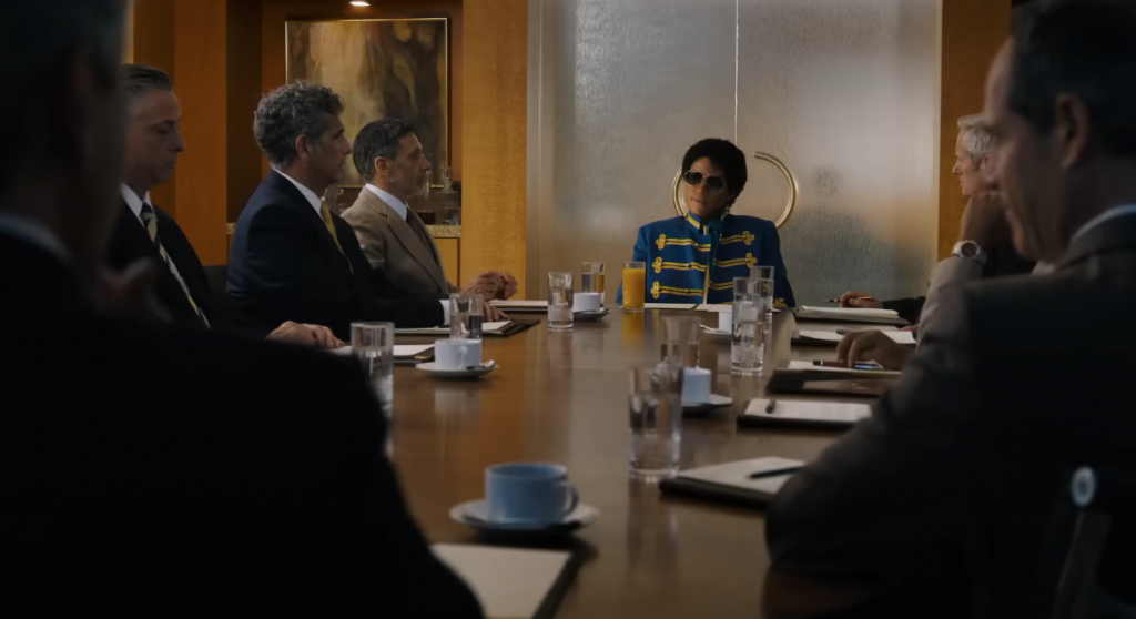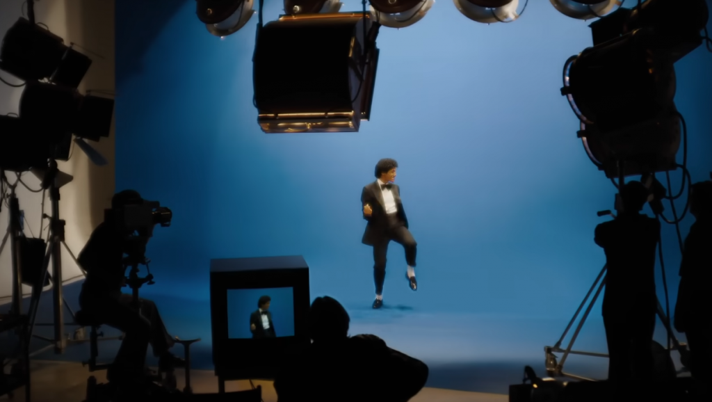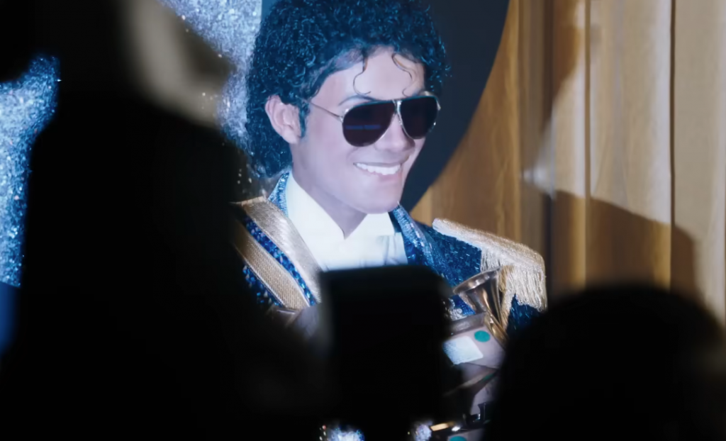 Неговата коса, облека и држење се менуваат низ сцените — токму како што и самиот Мајкл постојано се менуваше низ својата кариера.