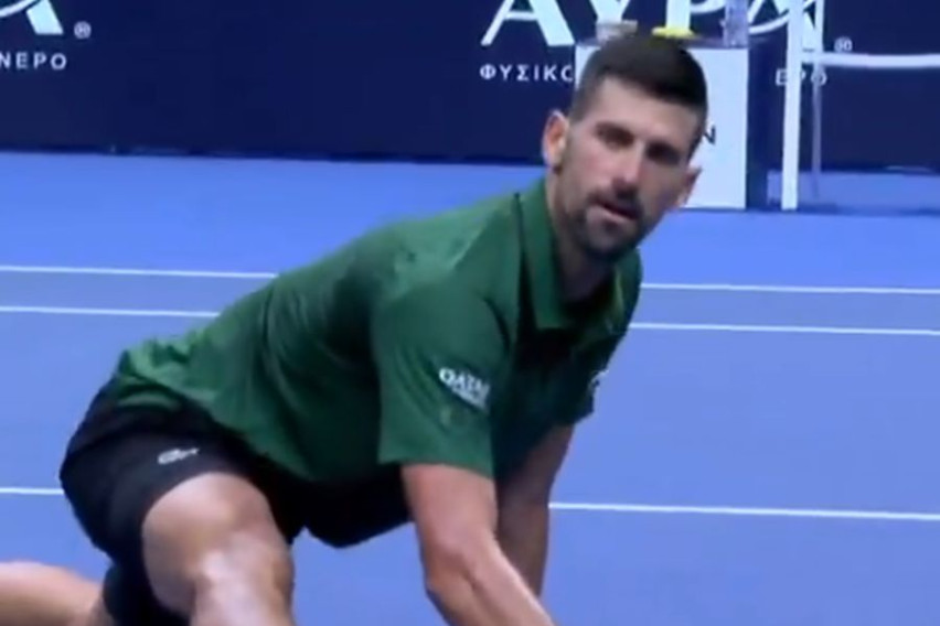 Новак со својата растегливост и импресивни движења уште еднаш покажа дека и пркоси на физиката, но исто така на фоторепортерите им овозможи да режираа и вирална слика со позата која ја направи по првиот освоен поен.