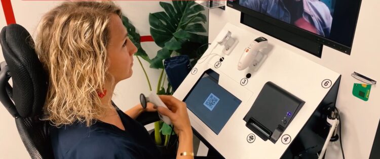 Однадвор, изгледа како обичен контејнер, но одвнатре е ординација за самопреглед со електронски стетоскоп, монитор за крвен притисок и отоскоп за преглед на увото, пренесе Дојче Веле.
