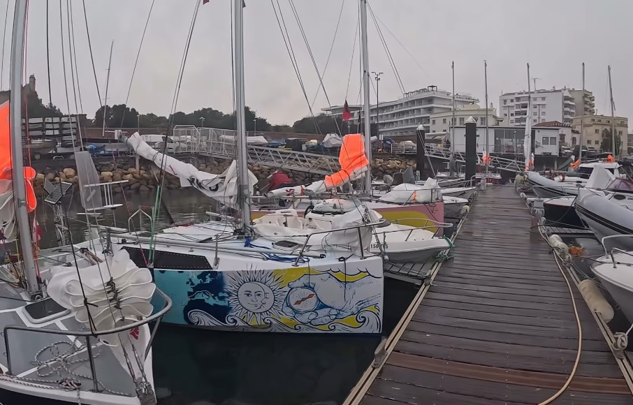 „По топлиот пречек во Лисaбон тројца тргнавме кон Сагреш, стартната точка на соло прекуокеанската трка. За жал стартот е одложен поради лошото невреме пред нас така што се преместивме во Портимао за да се заштитиме од невремето.