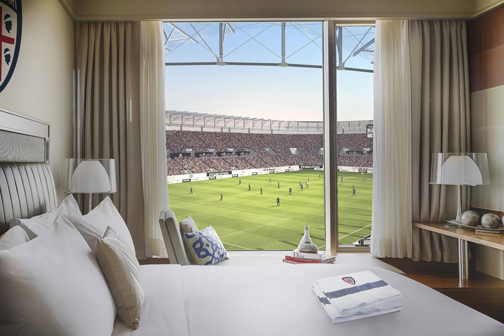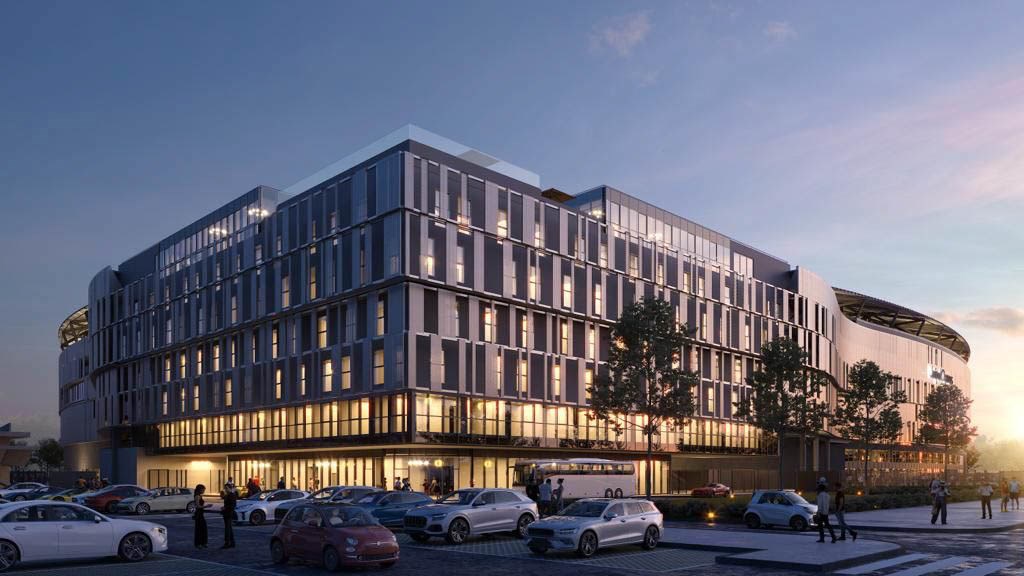 Проектот предвидува и хотелски соби поставени над еден агол од стадионот, како и отворена гостопримлива тераса со базен што гледа кон морето.