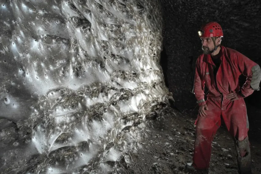 Дури и во целосна темница, оваа мрежа е тешко да се пропушти. Се протега на околу 100 квадратни метри – приближно со големина на мала куќа – и виси во низок, тесен премин во пештера на границата помеѓу Албанија и Грција. Но, она што ги изненадило научниците уште повеќе од нејзината големина бил составот на нејзините жители.