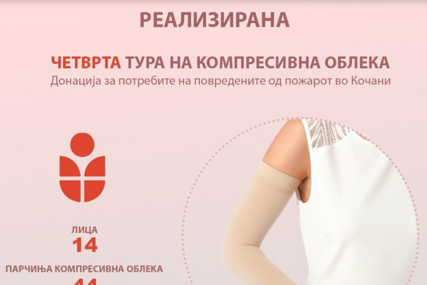 Овој циклус на донации опфаќа 44 парчиња компресивна облека, изработени по индивидуални мерки за 14 пациенти, со вкупна вредност од 452.537 денари. Средствата се обезбедени исклучиво преку донации од граѓани, компании и поддржувачи од земјата и странство, што уште еднаш ја потврдува силната солидарност кон повредените.