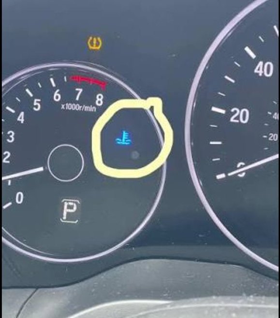 Една корисничка објавила фотографија од својата инструмент табла со заокружениот светлечки симбол и прашањето: „Што значи овој знак?“.