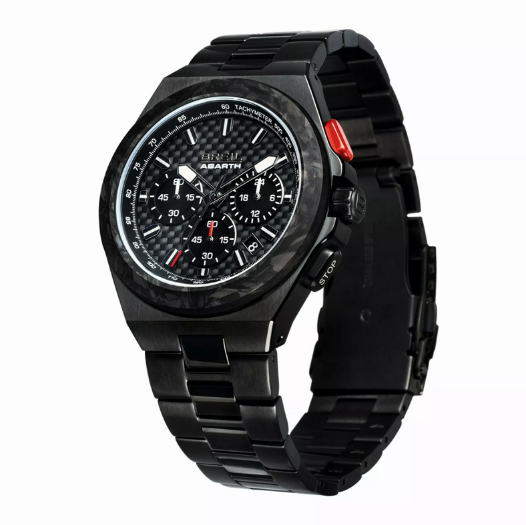 "Breil Abarth 1000" се истакнува со црно куќиште од не’рѓосувачки челик во комбинација со ковани и класични јаглеродни влакна. Копчињата "Start" и "Stop" се поставени на позициите 2 и 4 часот. Часовникот има скелетонизирани сказалки од IP-литиум со светлечки премаз.