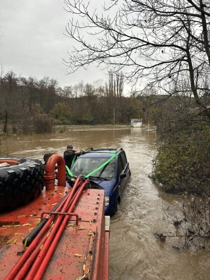Пожарникарите спасија лица заглавени во автомобил по излевањето на Пчиња кај бањата „Стрновац“ во општина Старо Нагоричане.
