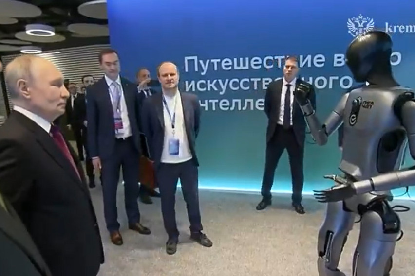 Робот со вештачка интелигенција денес настапи пред претседателот на Русија, Владимир Путин, на изложба организирана од една руска банка, со цел да ги прикаже технолошките достигнувања на компанијата.