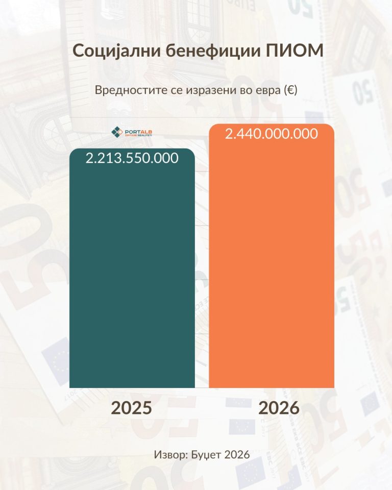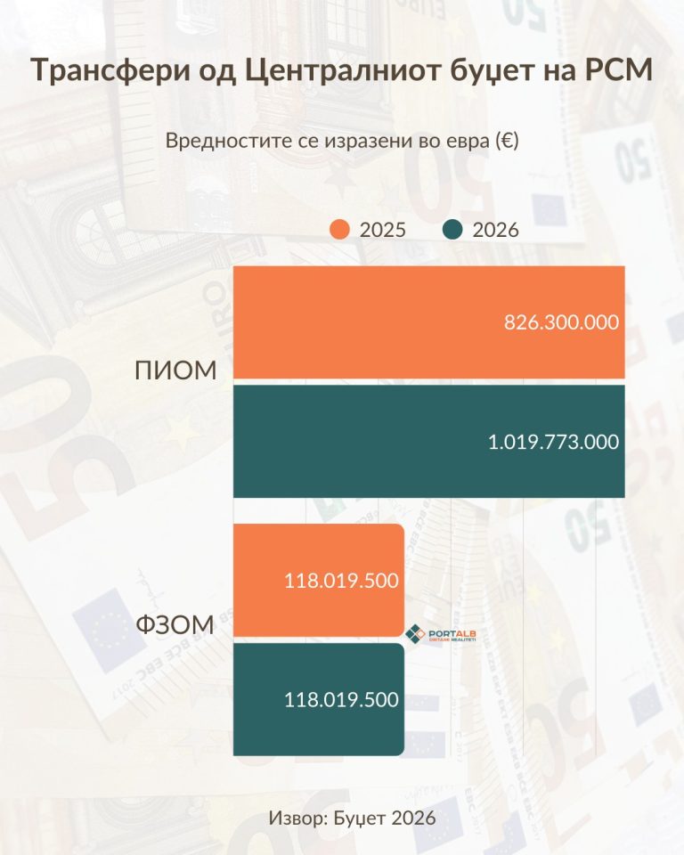 Вкупно 1 138 000 000 евра од државната каса во следната 2026 та година ќе бидат префрлени на сметка на двата државни фондови – ПИОМ и ФЗОМ. Сумата на трансферот до Фондот за пензиско осигурување достигна историски пик, надминувајќи 1 милијарда евра додека Фондот за здравствено осигурување ќе добие 118 100 000 евра.