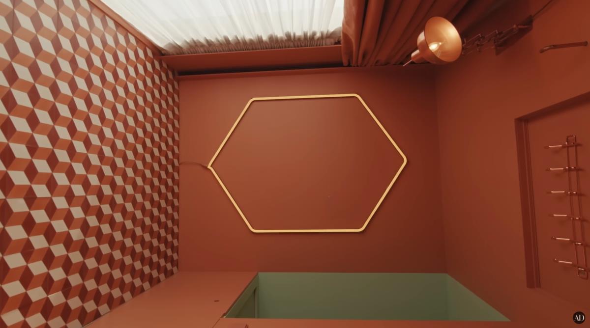 Ѕидот бил покриен со шпански плочки кои создаваат илузија на тродимензионален простор, додавајќи на прв поглед поголем простор на станот. Меѓутоа бањата била обложена со црн мермер заради заштеда затоа што парот одлучил да искористи парчиња мермер кои биле оставени во продавница како залиха и се продавале по 1/10 од оригиналната цена.