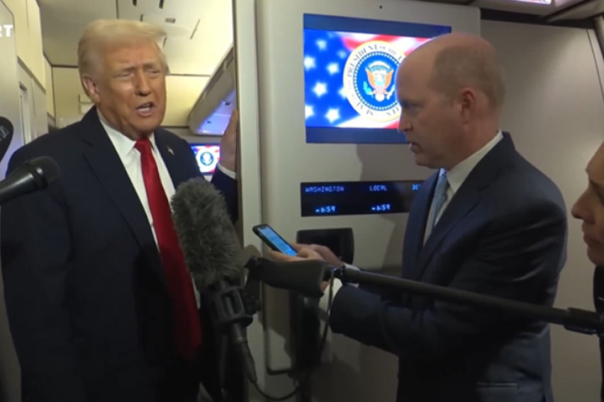 Во разговор со новинарите во „Ер Форс Уан“, Трамп рече дека не се согласува со тврдењата дека неговиот предложен договор е поповолен за Русија и дека Москва не прави никакви отстапки.