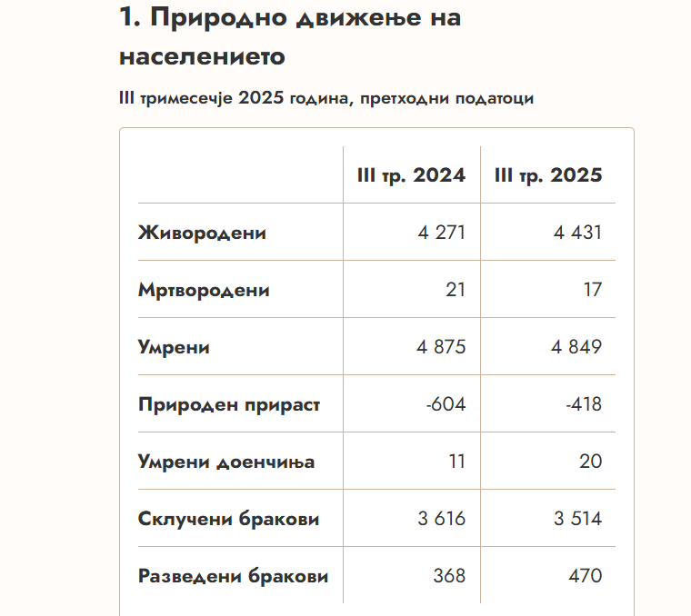 Од јули до септември годинава регистрирани се и 470 разведени бракови, што, пак, е зголемување од 27,7 проценти во однос на бројот на разводи во овој период лани.