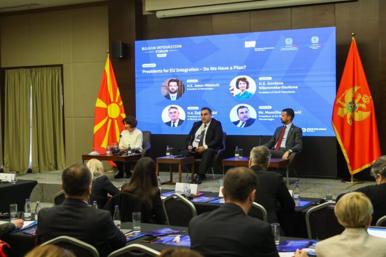 Време е за стратешки чекор на ЕУ кон Западниот Балкан. По долгата, па и маратонска евроинтеграција, заедничката географија, историја и култура треба да се заокружат со отворање на вратите за членство на балканските држави, порача претседателката Гордана Сиљановска-Давкова на Балканскиот форум за интеграција 2025, во Црна Гора.