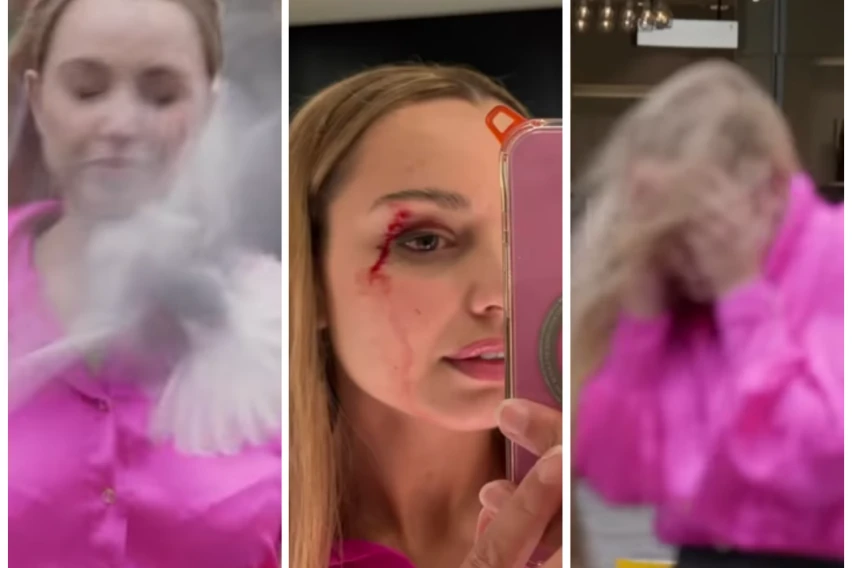 Репортерката Џесика Тајсон снимала репортажа во деловниот кварт на Окленд, Нов Зеланд, кога ѝ се случила сосема бизарна ситуација – галеб ѝ се забил во лицето и предизвикал исеченица над окото.