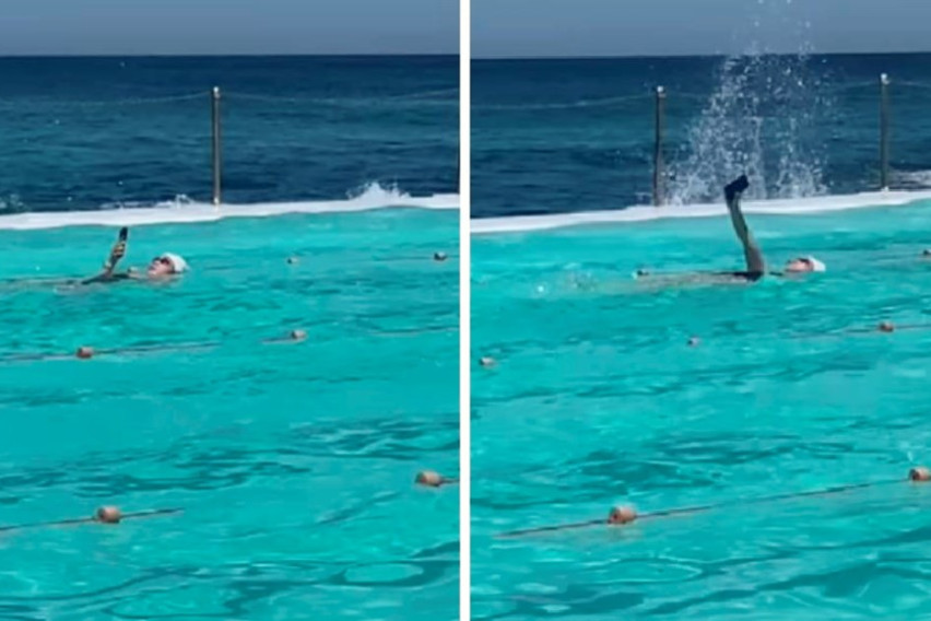Видеото, кое на социјалните мрежи го објави популарната страница „Brown Cardigan“, започнува со сцена на капачи во култниот базен „Bondi Icebergs“ во Сиднеј. Но, наскоро камерата се фокусира на една пливачка која, сосема опуштено, го прегледува мобилниот додека плива на грб во својата патека.