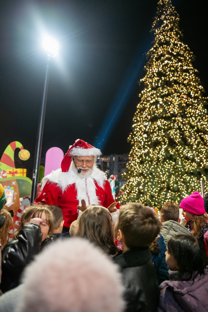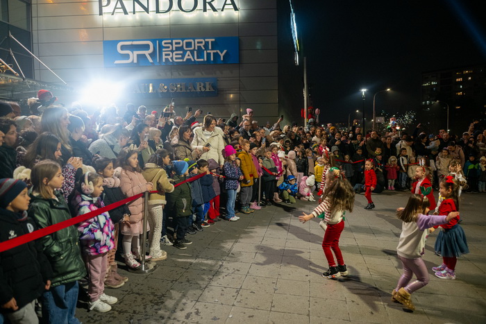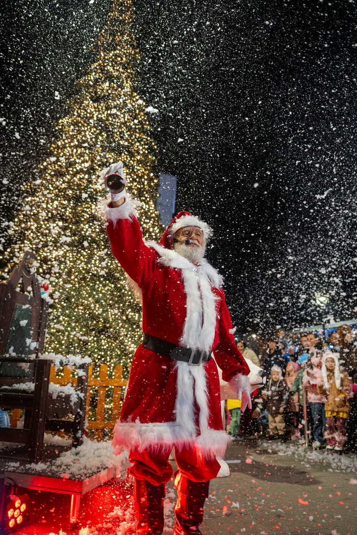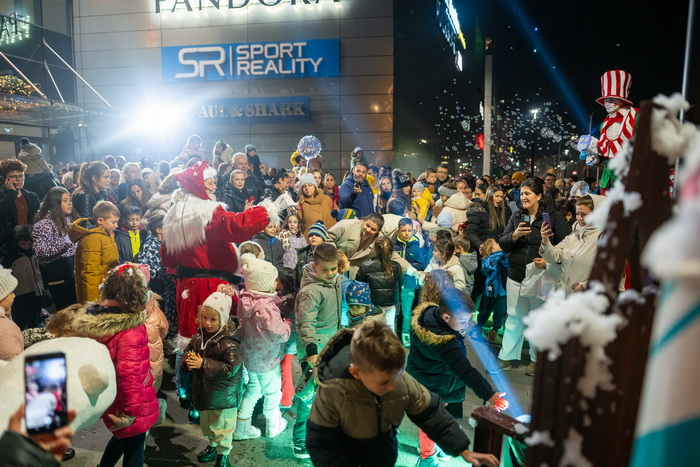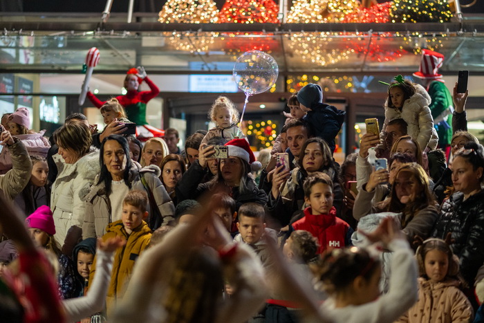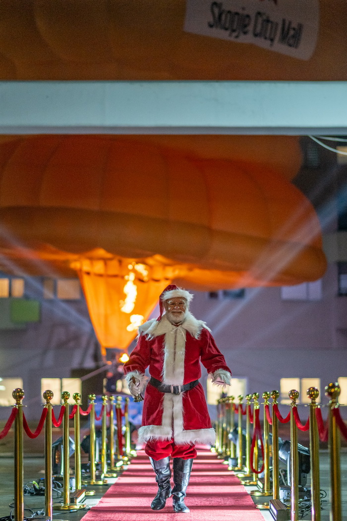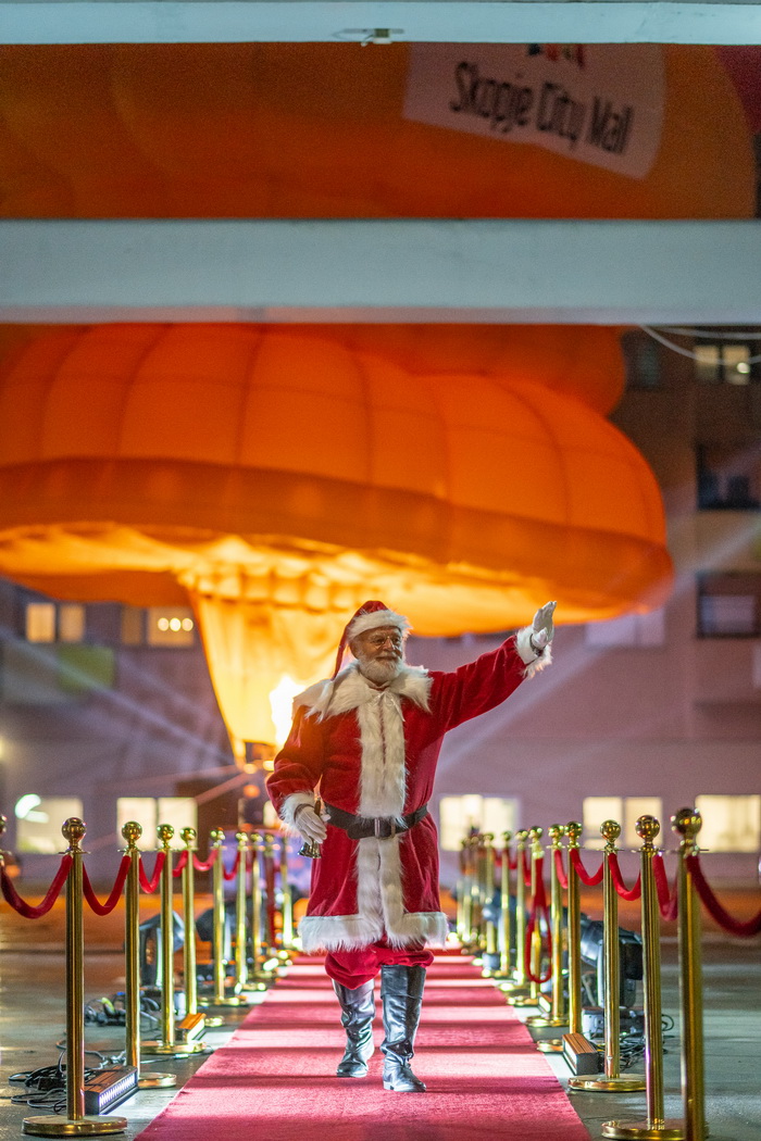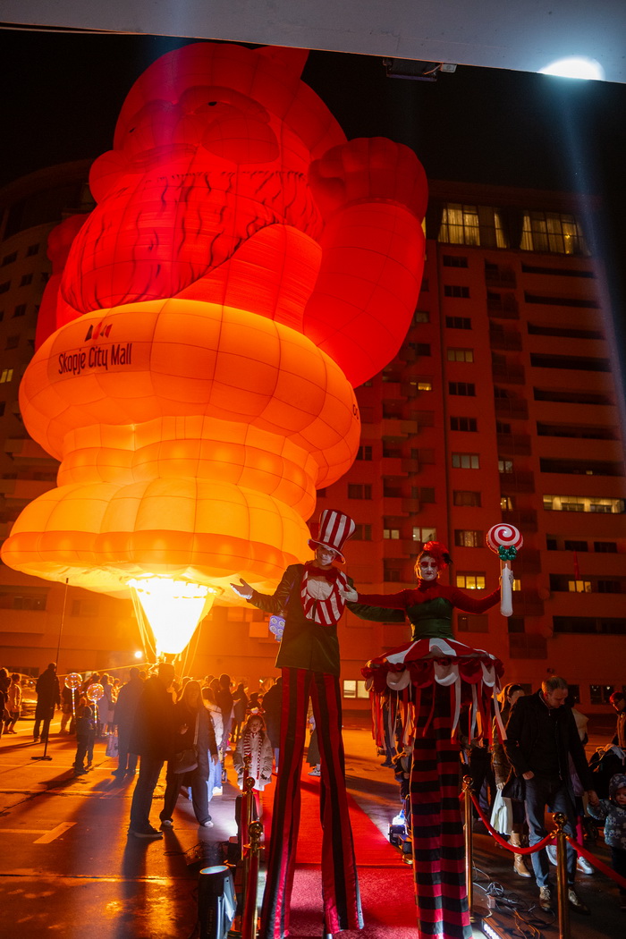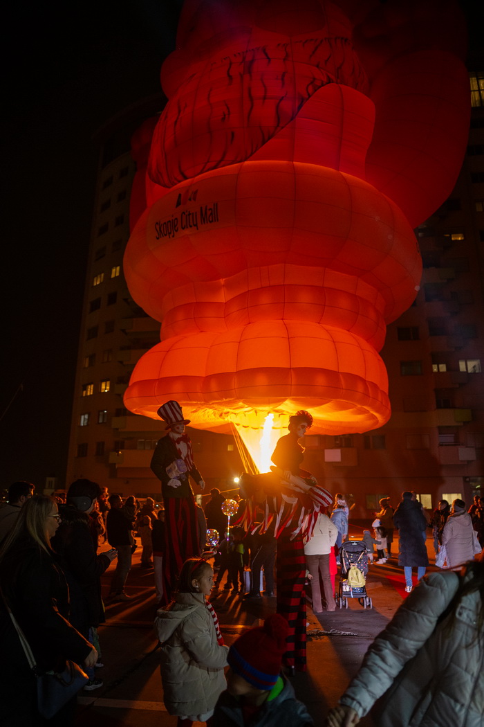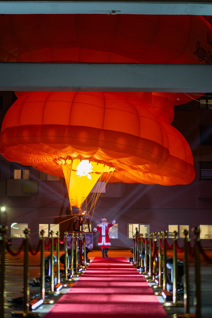 Од Северниот Пол директно на кровот на Skopje City Mall. Вчерашниот ден донесе вистински спектакл. Токму во моментот кога се запалија светлата на новогодишната елка и молот блесна во празничен сјај, посетителите беа изненадени од поглед што ретко се гледа: огромен балон на топол воздух кој се појави над градот, а во него, Дедо Мраз.