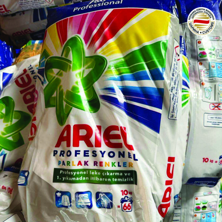 „Преку одделението за нетарифни мерки и заштита на правата од интелектуална сопственост при Царинската управа известен е правниот застапник на носителот на правото кој потврди дека предметниот прашак Ариел е фалсификат и со тоа ги повредува правата од интелектуална сопственост заради што е согласен за уништување на стоката“, соопшти Царината.
