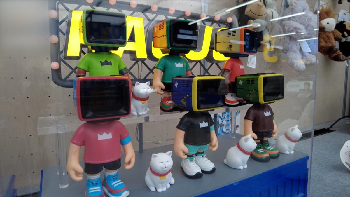 Најголемо внимание привлече роботот со глава налик на стар телевизор, кој всушност е вистински гениј. Се вика Ракус. Неговата глава е направена од AI-екран. Тој е четбот, вештачка интелигенција. Неговиот карактер постепено се обликува во согласност со начинот на интеракција. Неговата цена е само 70 евра.