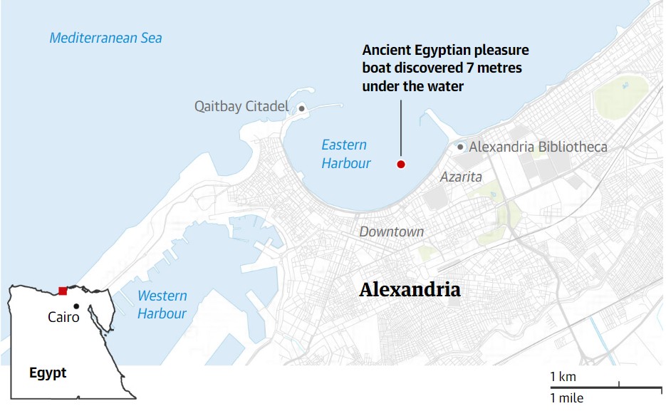 Тим археолози од Европскиот институт за подводна археологија (IEASM), предводен од професорот Френк Годио од Универзитетот во Оксфорд, пронашол брод во водите во близина на потонатиот остров Антиродос, кој бил дел од античкото пристаниште во Александрија.