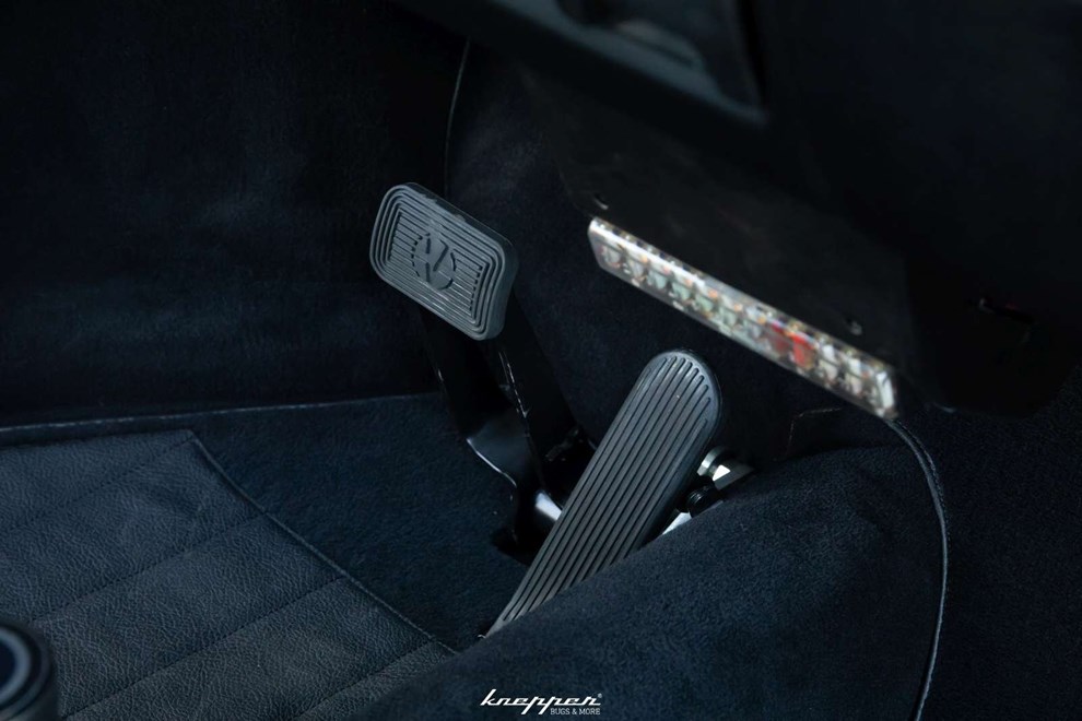 Внатрешноста во голема мера останала верна на оригиналот, но спојката и рачката на менувачот се отстранети. Нивното место го зазема дигитална управувачка табла за електричниот погон. Вградени се седишта "Recaro" од "BMW 2002", а греењето е обезбедено со електричен грејач сместен под задната клупа.