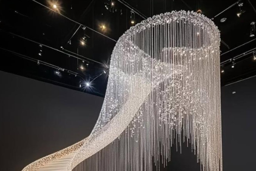 На Инстаграм се појави спонзорирана објава која привлече глобално внимание. Фотографијата прикажува огромни спирални скали од сребрено стакло, украсени со кристални нишки и сјајни детали. Делува како луксузна, речиси футуристичка инсталација.
