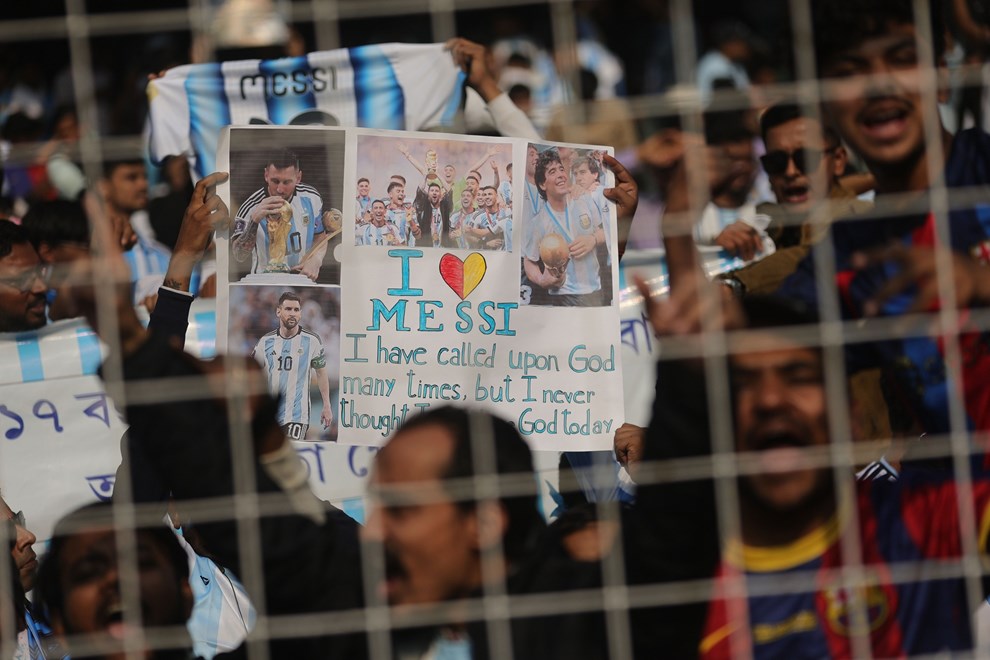 Набрзо од трибините почнале да се слушаат извици „го сакаме Меси“, а фрустрациите ескалирале кога навивачите почнале да скокаат преку огради и да влегуваат во теренот во очаен обид да го видат својот идол.
