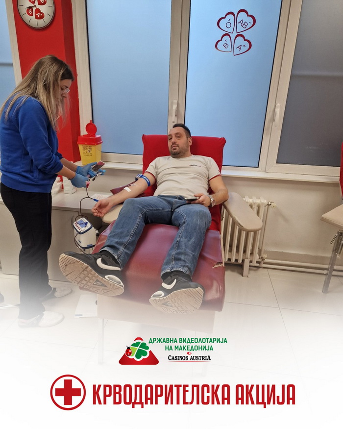 И овој декември, Видеолотарија Касинос Австрија ја продолжи својата хумана мисија и традиција на општествена одговорност, реализирајќи ја 25-тата крводарителна акција. Акцијата се одржа во просториите на Институтот за трансфузиона медицина во Скопје.