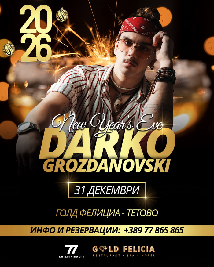 По информациите кои ги дознаваме, Gold Felicia Тетово подготвува спектакуларен дочек на Новата година, а централна фигура на новогодишната ноќ ќе биде Дарко Гроздановски. Поради големиот интерес за неговите настапи, менаџментот на Gold Felicia Тетово одлучи токму тој да ја предводи забавата за дочекот на 2026 година.