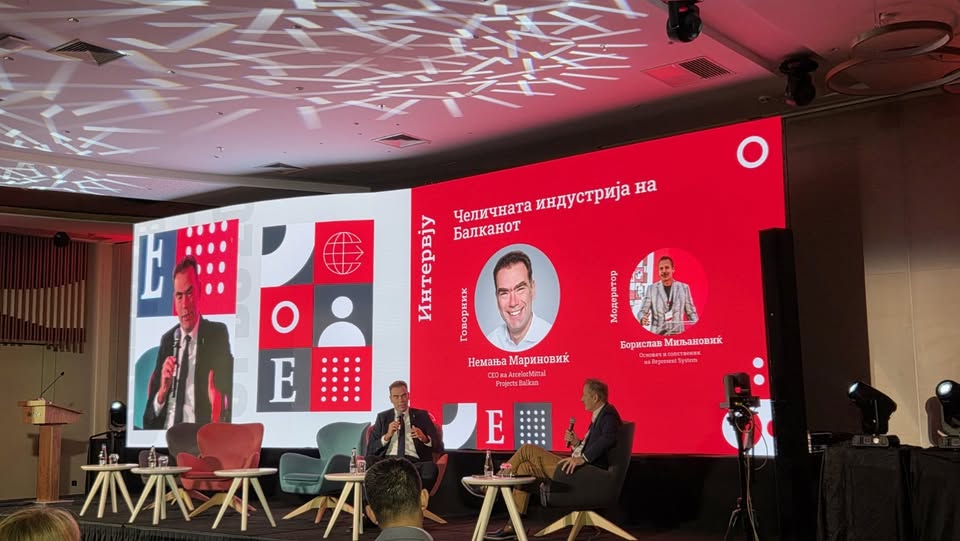 Веќе во завршниот дел од самата конференција, разговорот со Немања Мариновиќ, CEO на ArcelorMittal Projects Balkan ја насочи дискусијата кон долгорочната инфраструктурна и економска иднина на регионот. Мариновиќ се осврна на деиндустријализацијата во Европа, улогата на рециклирачкиот челик и значењето на клучната, но често невидлива инфраструктура, посочувајќи ги и предизвиците како доцнења, недостиг на кадар и перцепција за корупција. Тој нагласи дека стратегијата на ArcelorMittal е фокусирана на квалитет и техничка супериорност, со порака дека промените треба да се гледаат како можност, а не како пречка.