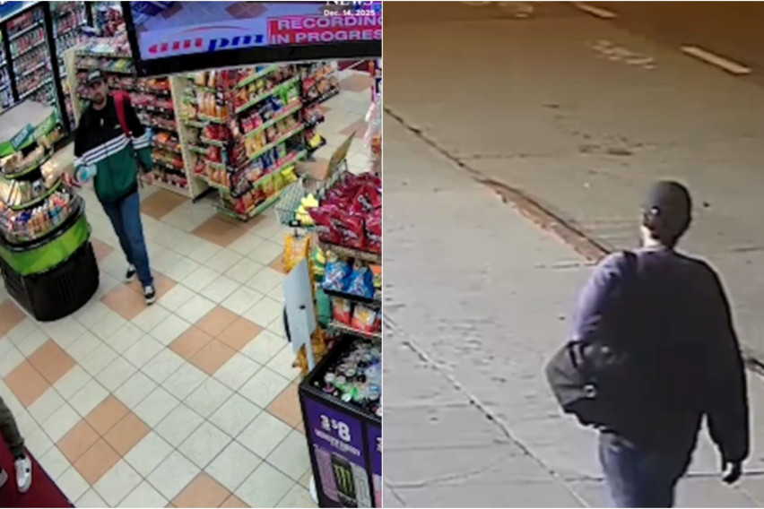 Снимката го покажува како влегува во продавницата, зема пијалок од ладилникот и плаќа со готовина, повремено погледнувајќи преку рамо.