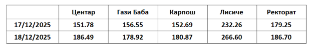 „Согласно настанатата состојба за мерните места во Скопје – Центар, Гази Баба, Карпош, Лисиче и Ректорат важат следните мерки: