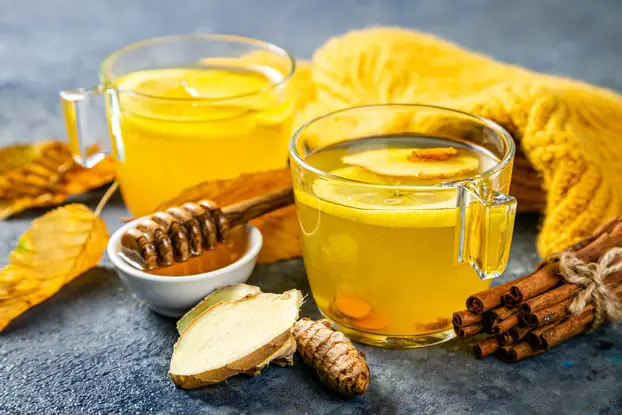 Овој билен чај, базиран на принципите на кинеската медицина, содржи цимет, зелен чај, ѓумбир и куркума, зачини богати со антиинфламаторни, дигестивни и антиоксидантни својства. Оваа едноставна утринска навика ја подобрува циркулацијата, ја поттикнува хидратацијата, ја оптимизира апсорпцијата на хранливи материи, го зајакнува имунолошкиот систем, го активира метаболизмот и помага во исфрлањето на токсините.