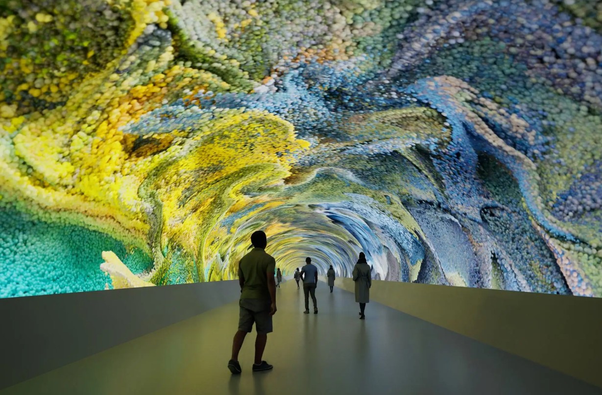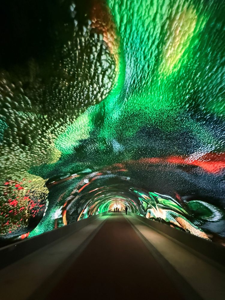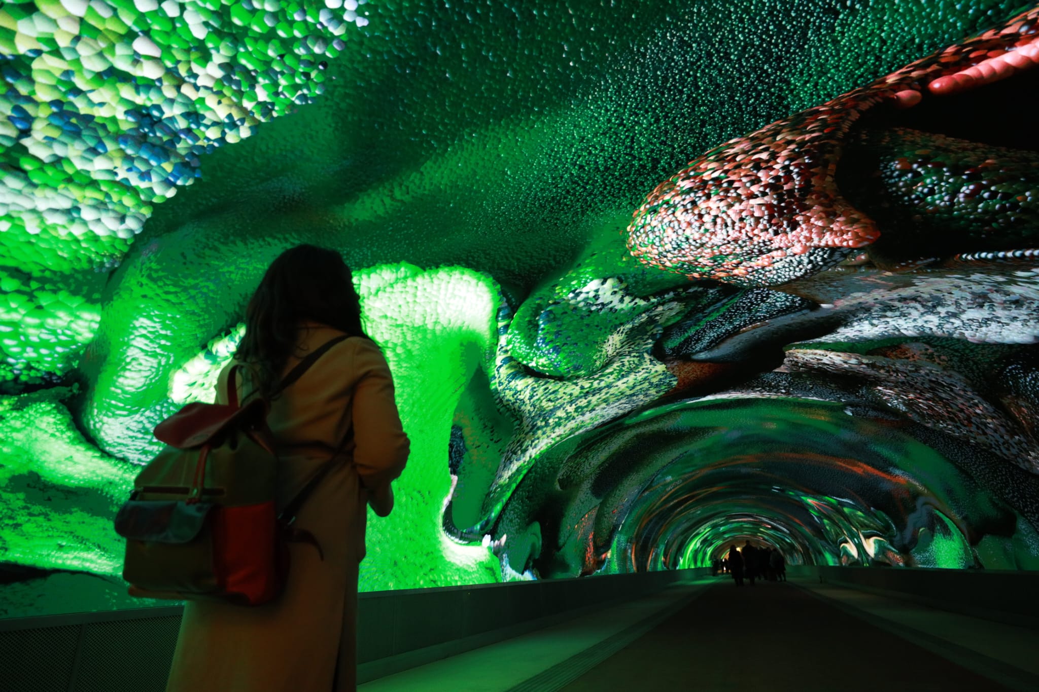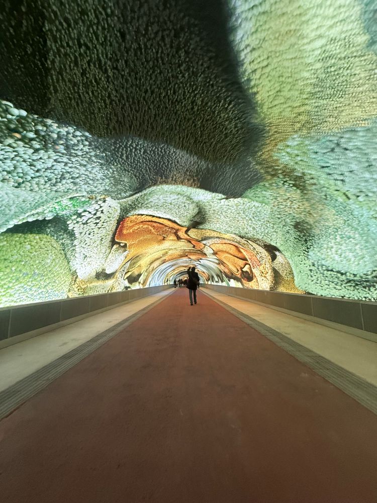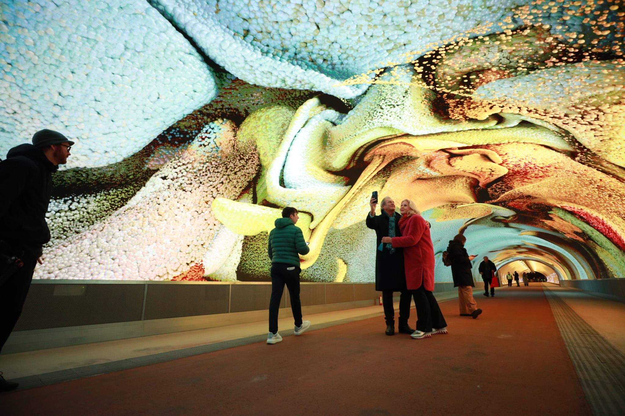 Инсталацијата, наречена „Дата тунел“, го трансформира просторот во дигитален организам во постојана трансформација. Долж преминот, во реално време, настануваат органските форми инспирирани од природата – ботанички текстури, океански струења и атмосферски ритми – создавајќи континуиран визуелен и звучен тек.