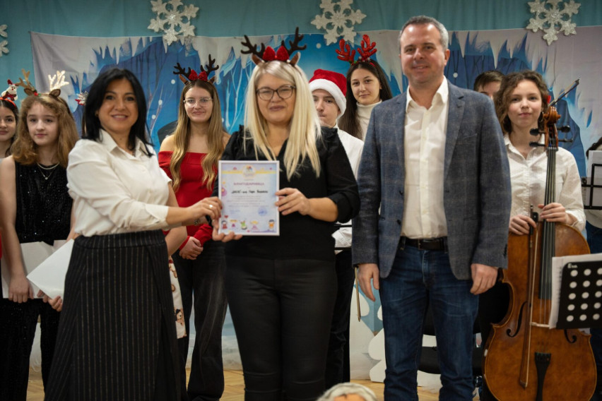 Со специјално подготвена приредба заедно со учениците од ДМБУЦ Илија Николовски Луј под водство на проф. Маре Видевска, со традиционални новогодишни композиции, сценски точки и празничен дух, најмладите упатија новогодишни честитки и желби до најблиските, и до најомилениот лик, дарежливиот Дедо Мраз.