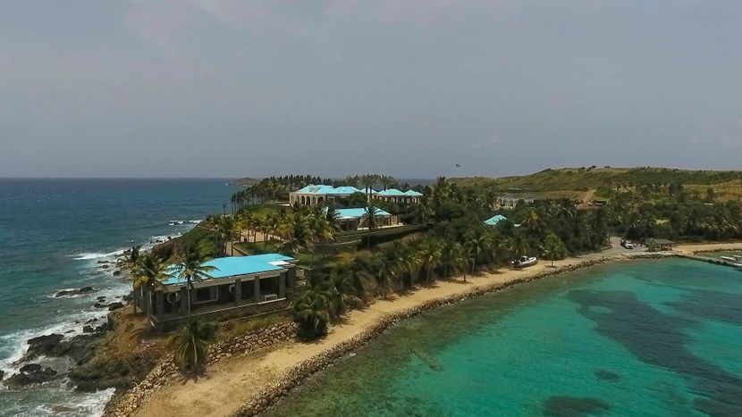 Милијардерот почнал да го трансформира островот од 78 хектари кратко откако го купил во 1998 година, отстранувајќи ја автохтоната вегетација, окружувајќи го имотот со високи палми и поставувајќи две џиновски американски знамиња на двата краја од островот.