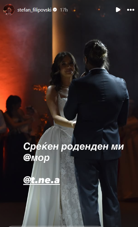 Стефан Филиповски од „Некст тајм“ преку социјалните мрежи ѝ го честиташе роденденот на својата сопруга Тинеа, споделувајќи фотографија од нивната свадба и кратката порака „среќен роденден ми амор“, која веднаш привлече внимание кај јавноста.