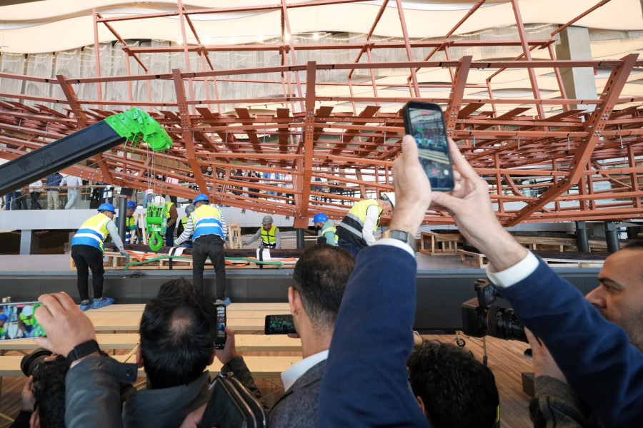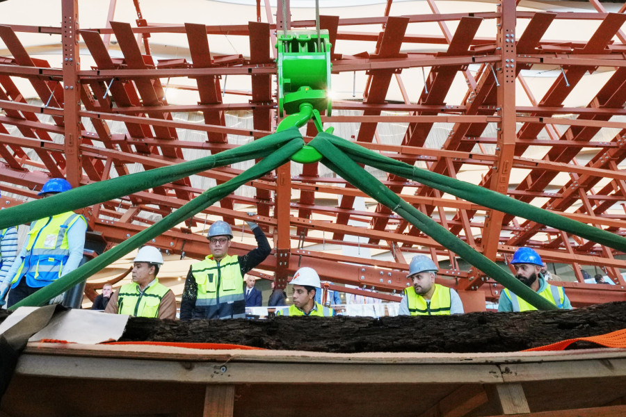 Чамецот на египетскиот фараон Куфу јавно се составува во Големиот египетски музеј (GEM) пред посетителите.