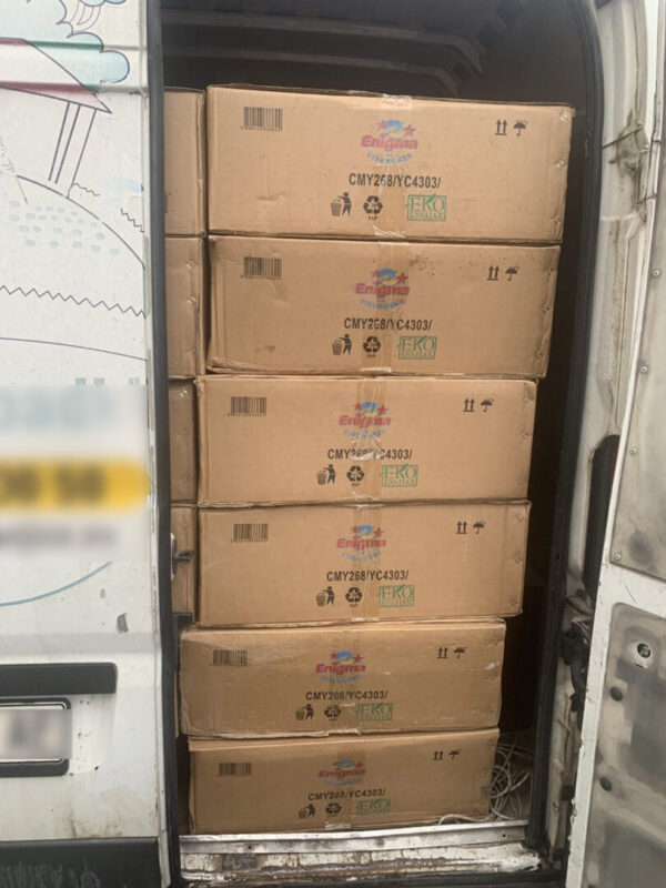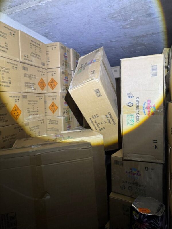 [ВИДЕО/ФОТО] Пронајдени се над 25 тони пиротехнички средства во две товарни возила и магацини на правно лице: Двајца уапсени од кои едниот е полицаец