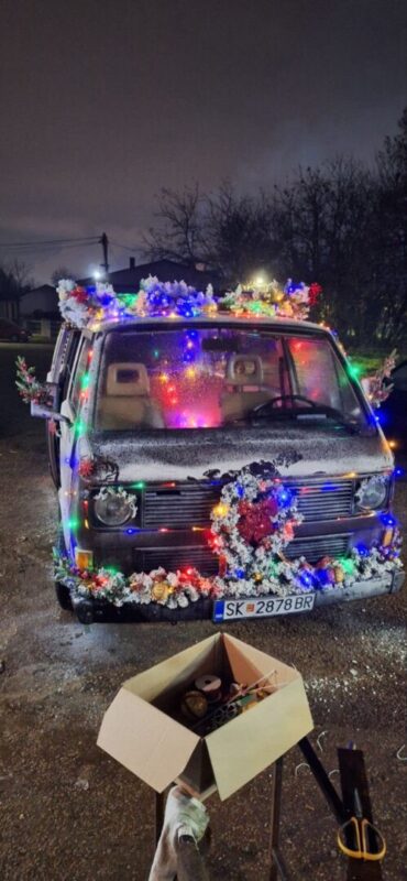 Инаку, низ градот Дедо Мраз може да го забележите со новогодишно украсено комбе, внатре полно со пактчиња.