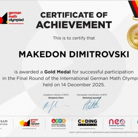 Македон постигна исклучителен успех освојувајќи златен медал на Германската математичка олимпијада успехот е уште...