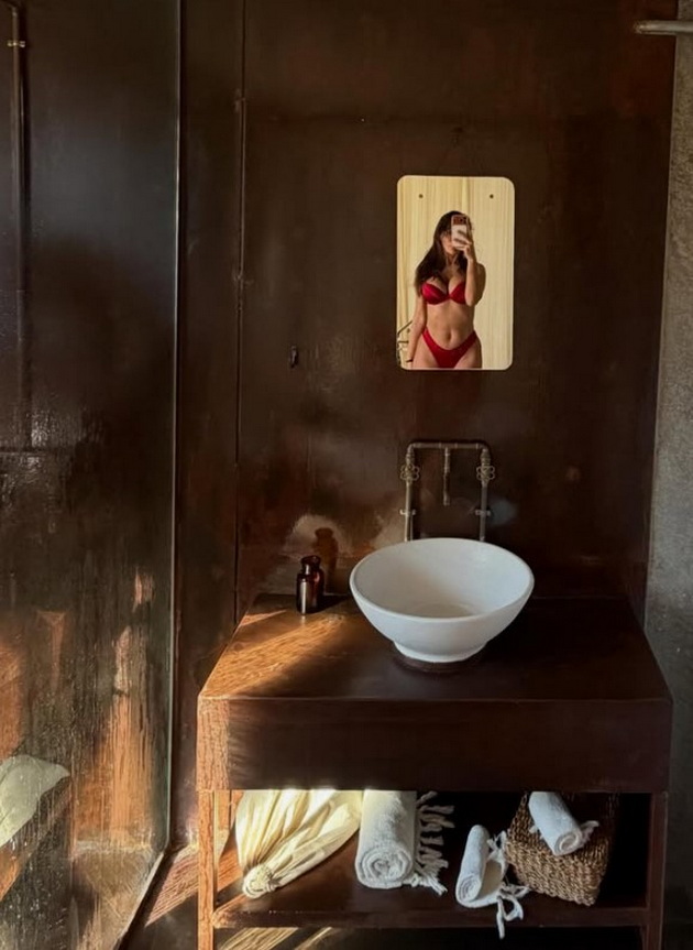 На две фотографии, убавата Љупка позира топлес во бањата, а на себе носела само танга гаќички и црни високи чорапи. Таа објави уште една фотографија на која носи црвена долна облека која ги истакнува нејзините облини.