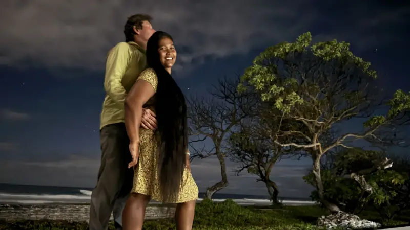 Брајант Дан, претприемач од САД специјализиран за муварење (fly fishing), на островот ја слави Новата година со својата партнерка Ваата Бинока Рандолф, која е родена и израсната на Киритимати.